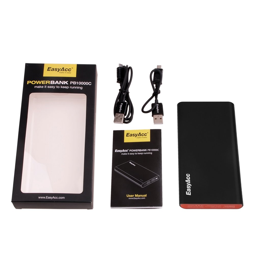 EasyAcc® 10000mAh Brilliant Ultra Slim Dual USB (2.1A / 1.5A Output) Portable Power Bank External Battery Charger for iPhone iPad Samsung Galaxy Android Phone Smartphone Tablets Pc Bluetooth Speaker - Black and Orange